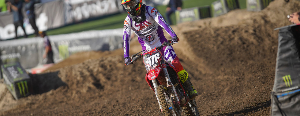 Joan Cros was looking forward to another weekend of improvement when the day began inside Angel Stadium. His goals were clear when the day started and his smooth steady speed began to show as he circulated the difficult track. He found his groove quickly and pushed hard to the end of all three sessions. His time would eventually come in at 35th fastest, and he knew he had a lot of work ahead of him. Joan would line up to the LCQ, with one thing in mind, aggression. When the gate dropped, Joan launched off the line and had a wheel on everyone going into the first corner. Regardless of the lead, Joan was going into the flat first corner with lots of riders to his inside, due to his outside gate choice, and he was pushed wider than expected. Joan pushed all the way to the checkered flag but would come up just short of qualifying position.