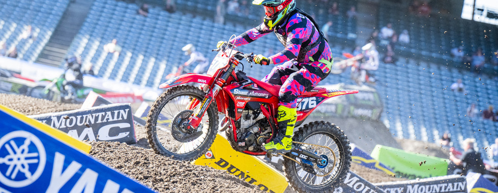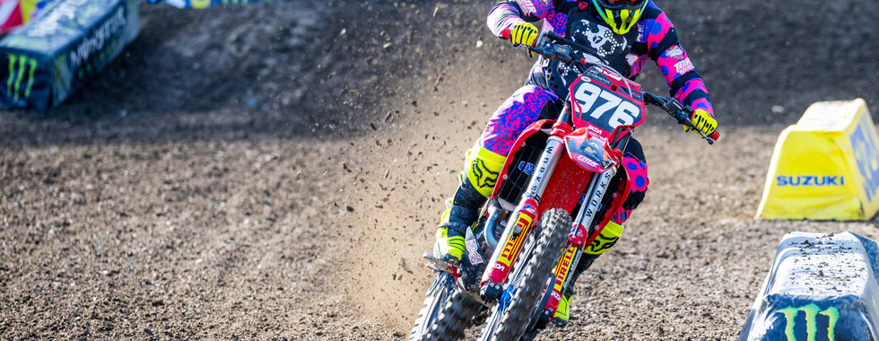 Josh Greco was determined to make it happen for himself when the day began in Anaheim. He has shown speed all year and due to the triple crown format of Anaheim 2, it was necessary to qualify in the top 18 to go to the night show. Josh hit the track with confidence and began finding the fast lines. Luckily for Josh, the whoops were tricky and he knew he could make up some time in those sections. Josh did take an uncharacteristic tumble in the first session but luckily he was able to brush himself off and get back on the horse. His speed was looking good and his name was up there on the list but he knew he had to give it his all in the final qualifying session. The track conditions were beginning to change and the ruts were starting to develop as his session began. He did his best to get a clean lap but it was tricky with how challenging the track was becoming. By the end, he would qualify 26th overall and be forced to go to the LCQ. Josh Launched off the gate and was running around mid pack when he was funneled into the middle of a second corner pile up that stopped all of his momentum. His night would end there and the recovery began.