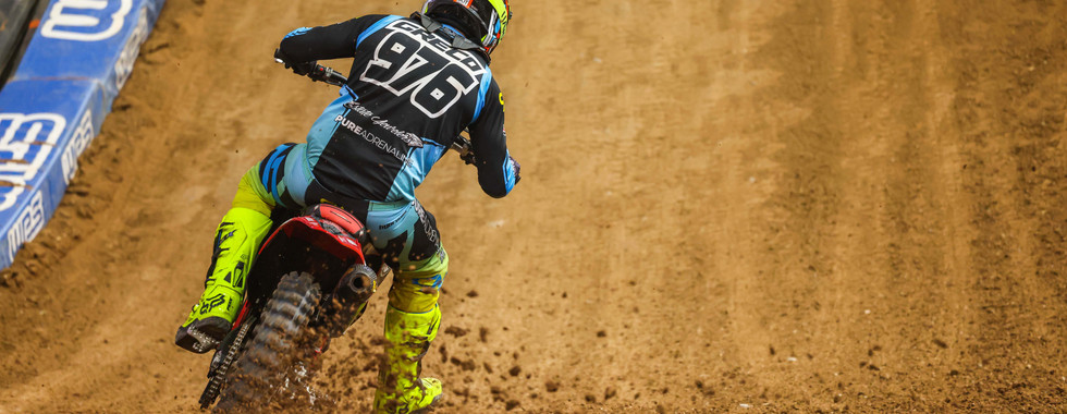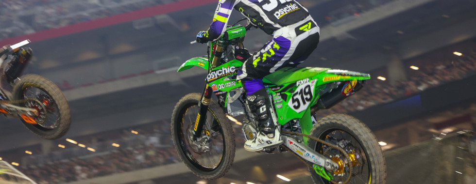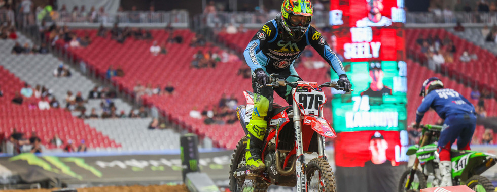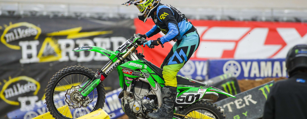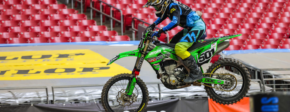 Josh Cartwright was eager to get his day started when he arrived at State Farm stadium in Glendale on Saturday morning. His season has been exceeding all expectations as of late and he was ready to keep it going in that direction. Josh knew the track conditions were going to be optimum but also knew that the Arizona soil would get slippery. He found his flow early when practice began and it was looking good for Josh early on. Due to the triple crown format, Josh knew it was imperative to qualify inside the top 18 to avoid the dreaded LCQ. Unfortunately, he would come up just a couple spots short and was forced to line up. When the gate dropped for the LCQ, Josh had tunnel vision as he launched to the front immediately. He would maintain his position all the way to the finish as he secured his spot in the night show. All three of the Main Event races went a similar way for Josh as he used his experience to stay on two wheels and maintain consistency. Josh would end up a very commendable 21st on the night.
