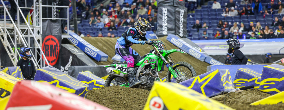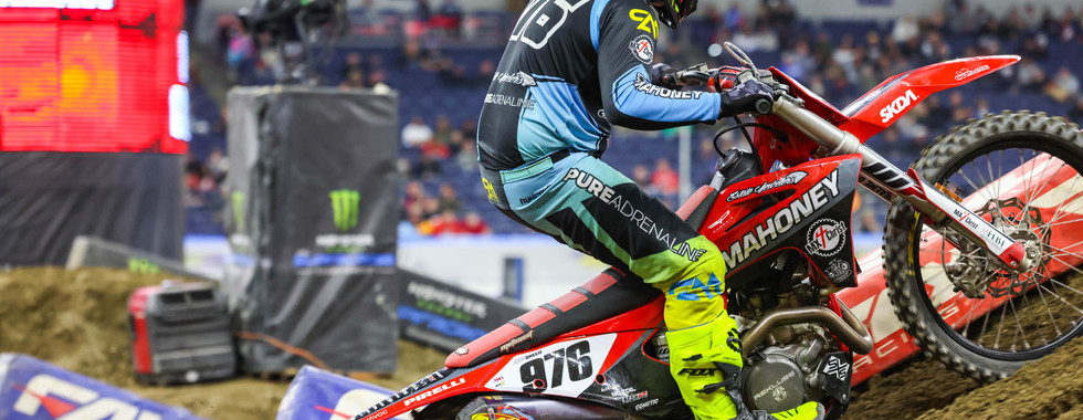 Josh Greco continues to ride the roller coaster that is his 2023 supercross season. Whether it's travel issues, illness, etc., he’s seen it all this year. Indiana was unfortunately no different as he began the day battling another illness. Determined as always, he hit the track and navigated the tricky ruts of Indy. He found the grooves he liked quickly and began to put in some steady fast laps. He would qualify right around 35th despite the illness and was ready to see what he could do under the lights. An outside gate would force him to the rear of the pack in the Heat but he used the laps to learn. In the LCQ, he would again get an unfavorable start. Nevertheless, he would push all the way to the checkers, passing nearly one rider every lap but would fall just short of qualifying position.