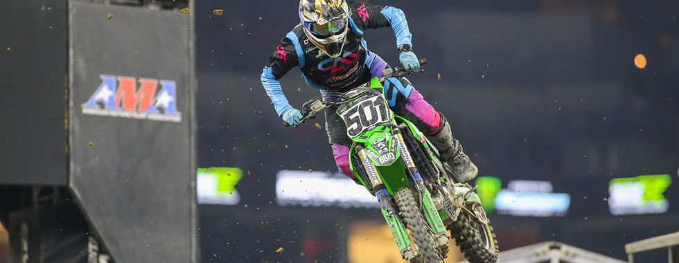 Joan Cros has really found something the last couple weeks and he was ready to continue the track of improvement when the day began inside Colts Stadium. Joan grew accustomed to the deep ruts quickly as he navigated them with great balance and intensity. He was looking faster and faster with each session and would eventually qualify an impressive 26th fastest. When the Heat began, Joan was victim to the track conditions as he was shuffled back quickly. He used the laps to learn the track even more and would line up to the LCQ with confidence. When the gate dropped, Joan launched off the grate with confidence. He found himself inside the top three and kept his focus on putting in consistent laps. His strategy would pay off as he crossed the finish line in qualifying position, punching his ticket to the Main. When this race began, it was pure survival. He kept the bike on two wheels as best he could and would end up with 21st overall on the night.