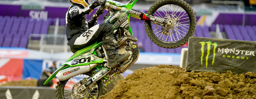 Josh Cartwright had been waiting for this moment all year long and the day had finally come. The kickoff of 250 East coast racing marked Josh’s 2nd race of the year following a warm up race he did to dust the cobwebs off where he competed in the premier division. All the work had been done and he was ready to mix it up with the stacked 250 east division. When practice began, Josh immediately looked comfortable as he topped his group of qualifying in all three sessions. He would go into the Heat with a very impressive 8th gate pick. As the bikes were rolling into staging, suddenly there was an issue with Josh's machine. Due to the freezing temperatures outside the stadium, Josh’s motorcycle did not want to start. They tried everything they could but would eventually have to call it quits as the other 19 riders took off down the start straight without him. A heartbreaking moment for Josh after such an impressive qualifying effort but he will take the confidence into next week in Texas and get it done.