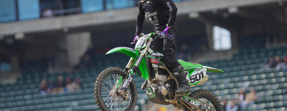 Bubba Pauli was coming off a great showing in Anaheim the weekend before and was ready to get back to it in Oakland on Saturday night. His bike was working great when the day began and he was enjoying the soft dirt in the bay. He found his groove quickly and qualified just outside the top 30. Bubba was then plagued by bad starts and chaos which put him in the LCQ. When the gate finally dropped Bubba did his best to move forward but would fall just short. He would call it a night and turn his focus to San Diego.
