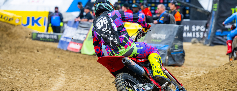 Scotty Wennerstrom was excited to continue his season when the day began on Saturday. With the anticipation for rain, Scotty knew he would take advantage of the dry track when the first free practice began. Scotty got the track dialed quick and began to find speed. He was clearly feeling confident as he charged through SnapDragon Stadium. Scotty’s first qualifying session began just as the rain did, and he knew he didn't have much time to put in a lap. Tackling the chewed up track, due to the other sessions before his, Scotty opened up the throttle. He crossed the finish line for his first possible green flag lap and was on the gas. He got through the first rhythm section clean and as he rounded the corner and began the next section, Scotty spotted a rock sticking out of the very rut he was already committed to. The rock wasn’t friendly to Scotty as his bike shot sideways and a decent tumble ensued. Thankfully Scotty was uninjured and dusted himself off and got back on the horse. With his bike all twisted up, he headed back to the pits to straighten it up for the next qualifying session. As if it wasn’t bad enough, Scotty heard the news that the second sessions were cancelled due to the rain and Scotty’s day was done as he never put in a timed lap. On to Anaheim.